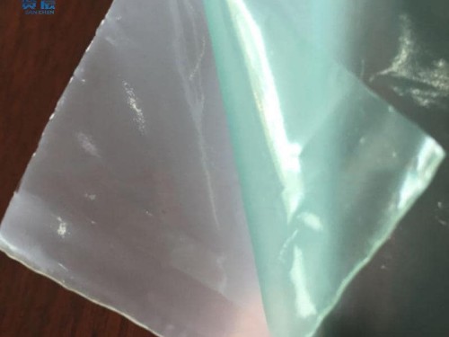 產品形態:薄膜+PE,表面為霧面,熱貼合后呈透明的狀態。
