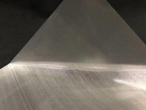 產品形態:薄膜+PE,表面為霧面,熱貼合后呈透明的狀態。